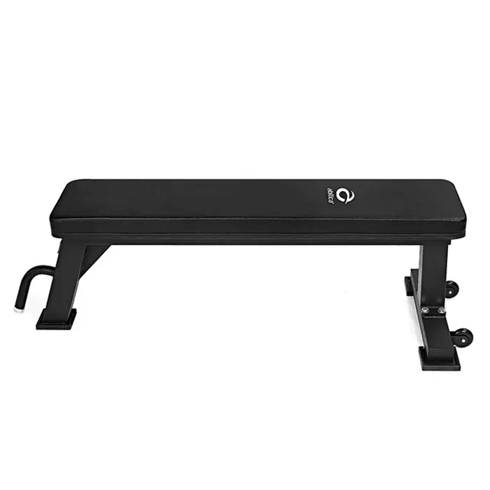 En robust och bekväm platt träningsbänk med stabil konstruktion och smarta detaljer som gör den idealisk för både hemmaträning och företagsgym.