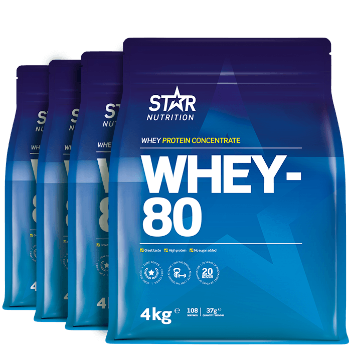 4 x Whey-80, 4 kg: ett komplett proteinpulver som är anpassat för dig som bygger muskler eller vill bränna fett på ett effektivare sätt!