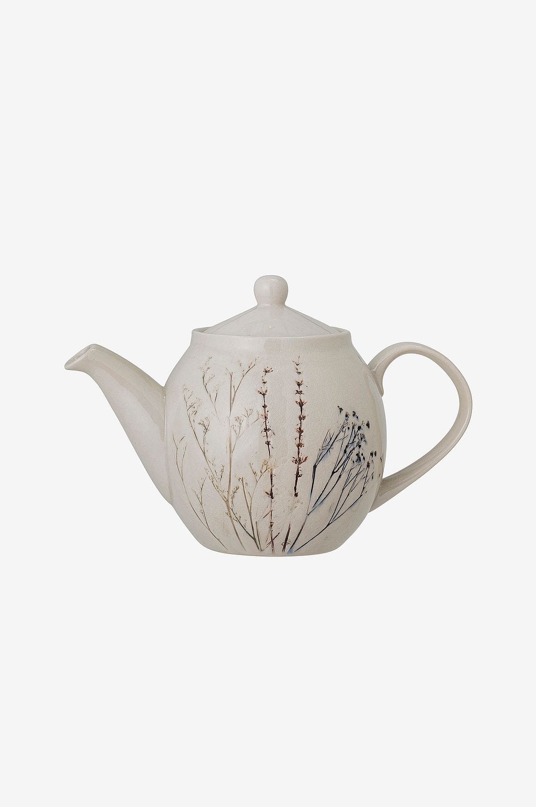 Bea tekanna från Bloomingville är en unik kanna av stengods i naturfärg med ett vackert, tryckt blommotiv på den krackelerade glaseringen. Eftersom produkten är handgjord är varje produkt unik. Rymmer 1,2 liter. Tål maskindisk.