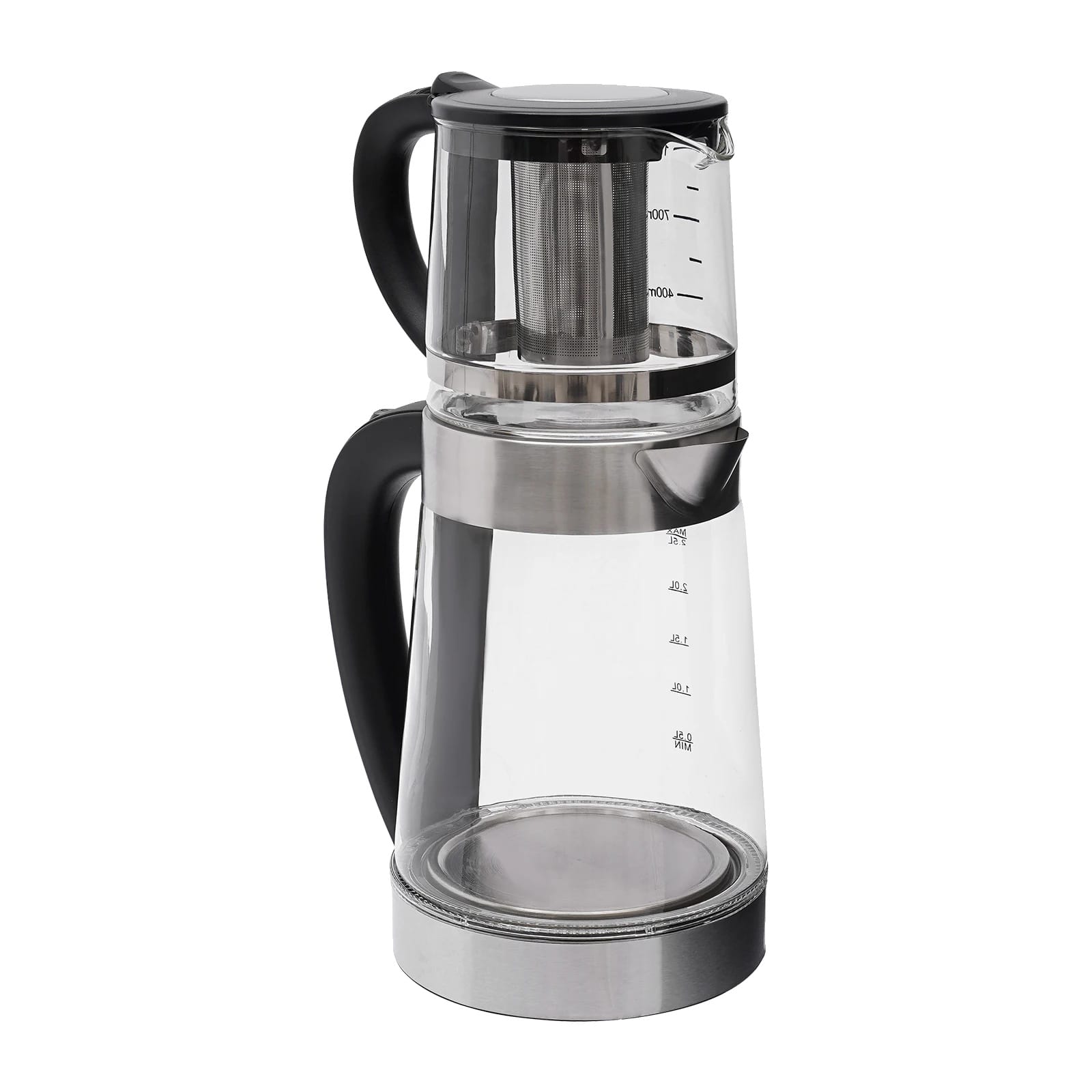 effektiv teberedning: njut av en tekanna och koka vatten samtidigt, vilket sparar värdefull tid när du underhåller. hållbar konstruktion: tillverkad av högkvalitativa material som motstår slitage och korrosion, vilket säkerställer långvarig användning. säker drift: utrustad med en automatisk avstängningsfunktion som aktiveras när vattenkokaren är tom, vilket ger sinnesro under användning. enkel mätning: inkluderar tydliga markeringar för noggrann kontroll av vattenvolymen, vilket möjliggör precision i bryggningen varje gång. stilren design: den moderna och eleganta utseendet på vattenkokaren förbättrar din köksinredning, vilket gör den till ett vackert tillskott i ditt hem. Specifikation: material: glas, plast, rostfritt stålstor kettle kapacitet: 2,5lliten teapot kapacitet: 1leffekt: 1800wsladdlängd: 80cmstor kettle höjd: 23cmliten teapot storlek (diameter x höjd): 10cm x 13cmsäkerhetsfunktion: skydd mot torkkokningVarianten du köper är:Transparent