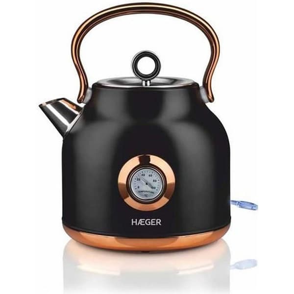 Haeger Art Deco Trådlös Elektrisk Vattenkokare Tekanna Svart Koppar 2200W 1,7L Temperaturdisplay Överhettningsskydd