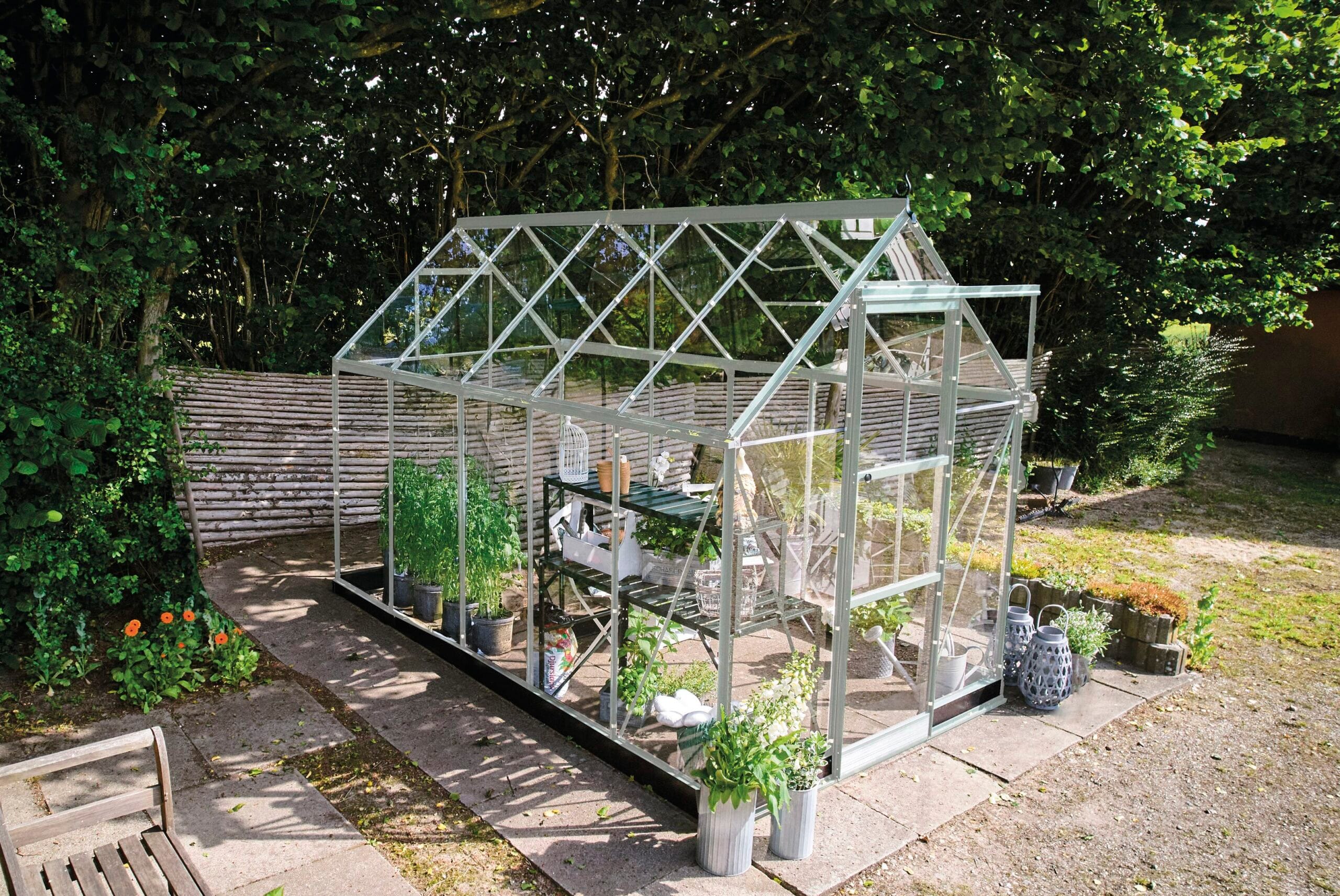 Halls ICON 6 är ett fristående växthus som kombinerar klassisk design med moderna funktioner. Den bekväma takfotshöjden på 149 cm och den totala nockhöjden på 235,3 cm ger bättre rörelsefrihet och plats för högre växter.