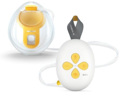 Bärbar Solo Hands-free bröstpump från Medela med en nätt, kompakt design. Den har en ergonomisk passform och en 2-Phase Expression-teknik som efterliknar barnets naturliga sugmönster. Pumpen ryms i din ficka och kuporna döljs diskret i BH:n, så att du kan pumpa hands-free var du än är.