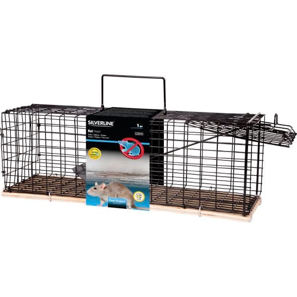 Råttfälla i form av en kraftig metallbur. Fällan fångar råttan levande effektrivt och hygieniskt och laddas enkelt med olika beten.