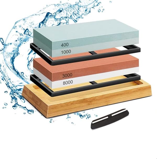 Denna YIKXIULF slipkit innehåller en dubbel sida slipsten (400/1000 och 3000/8000) med en halkfri bambubas. Idealisk för att slipa alla typer av blad, inkluderar den en vinkelguide för precis slipning. Tillverkad av vit korund, kräver den ingen särskild olja.