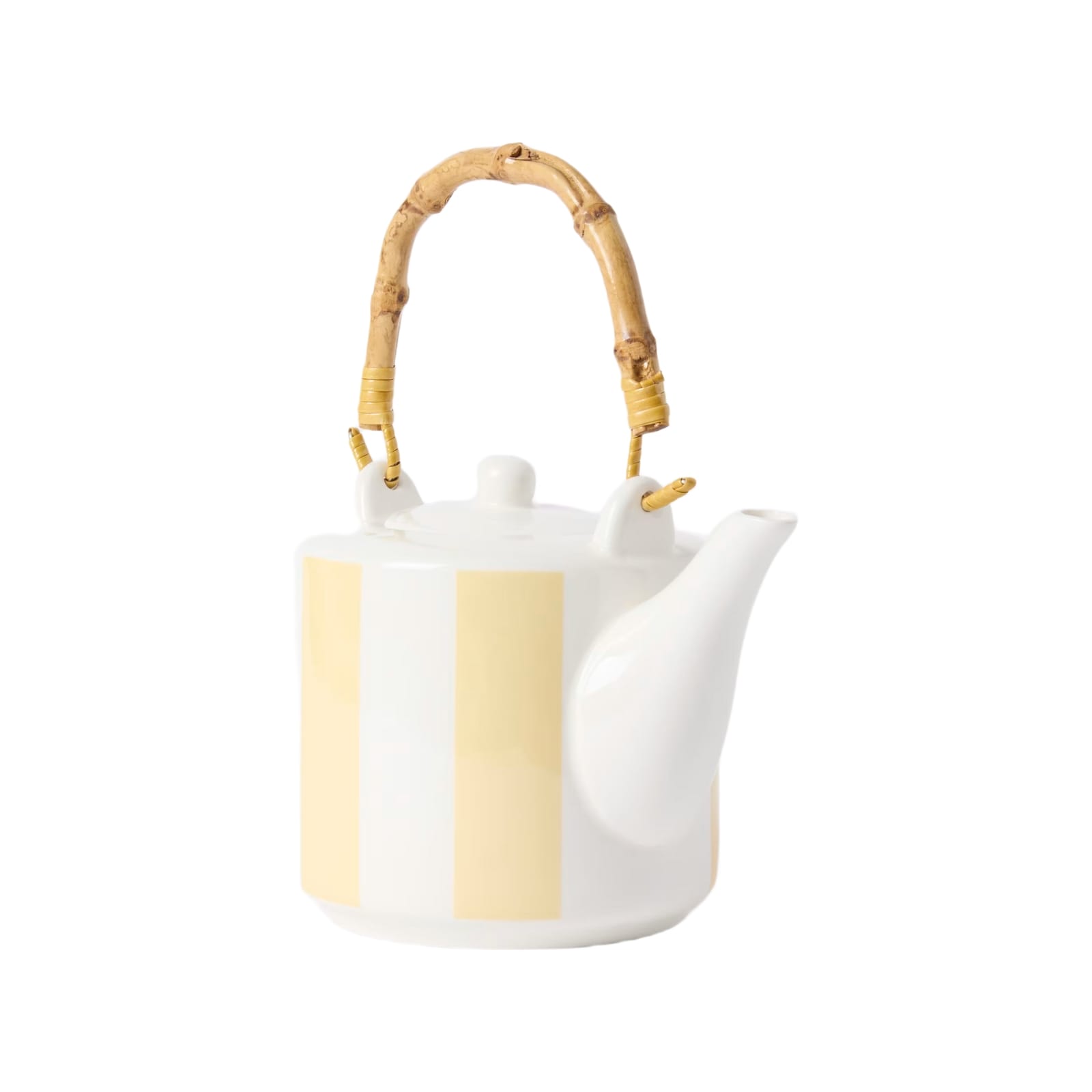 Randig tekanna med lock, tillverkad i stengods. Kannan har ett handtag i bambu som ger den en naturnära touch. Volym: 1,2 liter. Återvinning Lämnas till välgörenhet eller återvinningscentral.